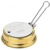 Réchaud à alcool Esbit Petit réchaud de poche à alcool Esbit avec poignée, en cuivre jaune. Bouchon à visser imperdable avec joint en caoutchouc. Régulateur de flamme. Remplissez le brûleur au 2/3 maximum avec de l’alcool à brûler.Un remplissage complet permet une combustion de 30 minutes maximum.Dimensions : 46 H x Ø 74mmRéférence : AB300BR / 410825 Poids : 92g